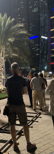 In the Dubai Marina Walk, we had to film the "landing" of the basejump from Princess Tower. For which we use a crane where we suspended our actors, Dany Boon and Carole Brana, and the parachute.
